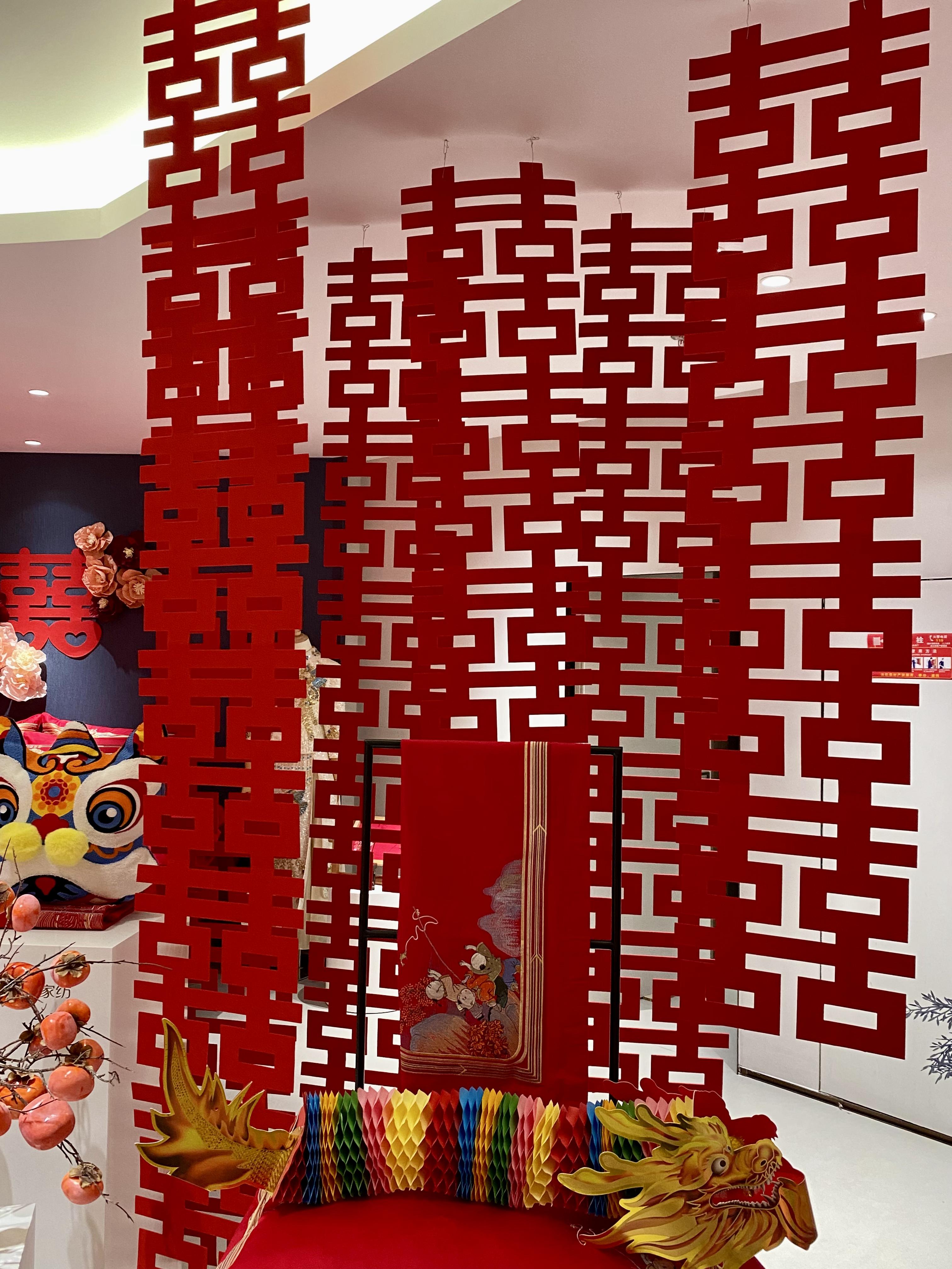 婚慶區(qū)通過精美的垂掛之“囍”、婚禮唱片機(jī)、維科喜樹等道具營造出浪漫而喜慶的氛圍,創(chuàng)造了一個令人陶醉的夢境。
