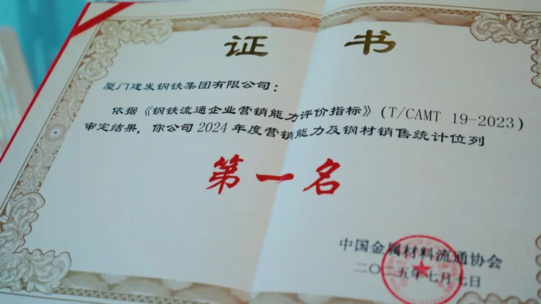 榮耀時刻 | 建發(fā)鋼鐵再獲中金協(xié)營銷能力及鋼材銷售統(tǒng)計(jì)第一名